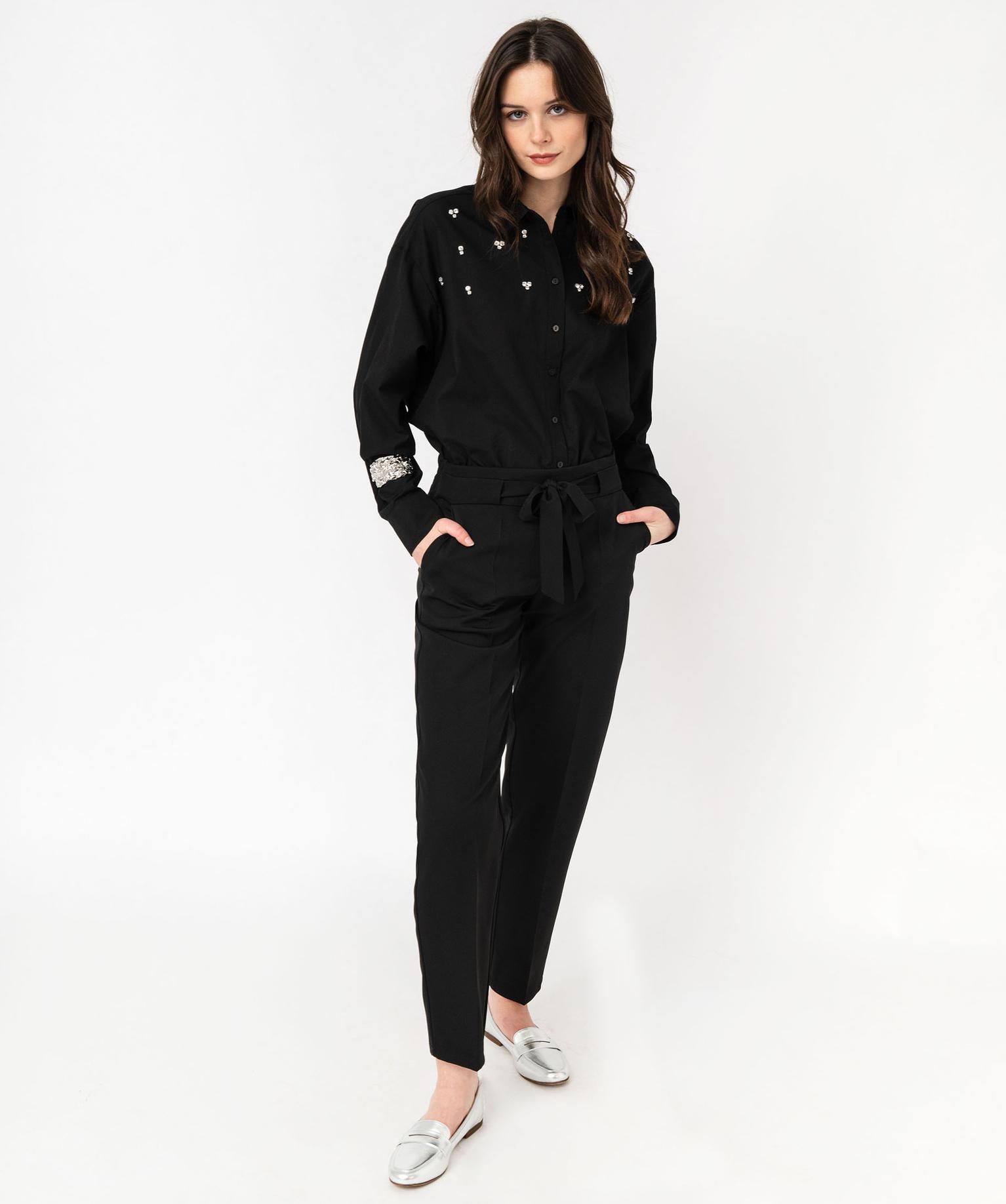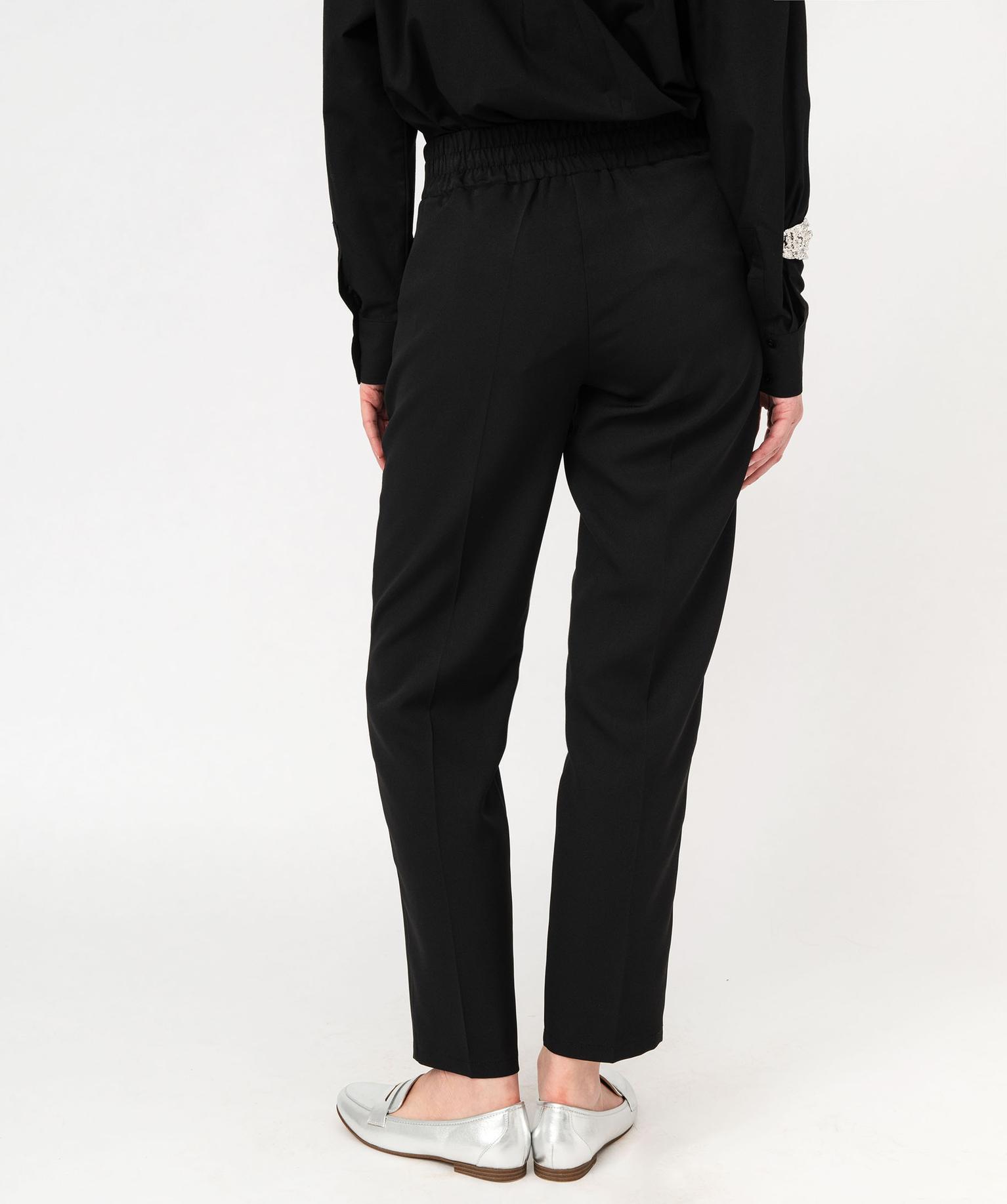 Ajoutez une touche de sophistication à votre dressing avec ce sublime pantalon de costume. Un pantalon fluide aussi élégant que confortable qui affiche une coupe ample légèrement resserrée dans le bas. Des plis marqués assurent à ce pantalon pour femme une allure ultra chic. Il possède une ceinture élastiquée au dos et plate sur l’avant, avantageuse pour la silhouette. Une ceinture plate est cousue à l’intérieur des passants et se noue sur l’avant, ajoutant une touche d’élégance supplémentaire. Ce pantalon de tailleur se porte avec une chemise et une paire d’escarpins. Deux poches italiennes.