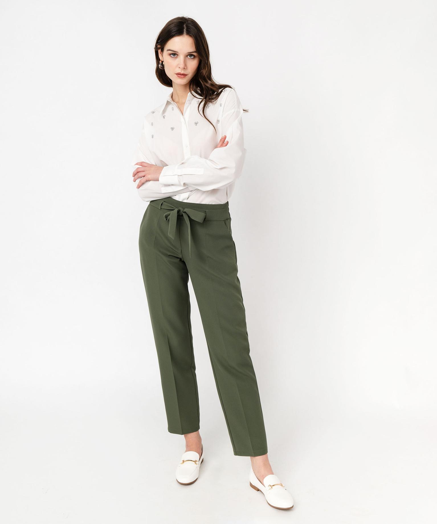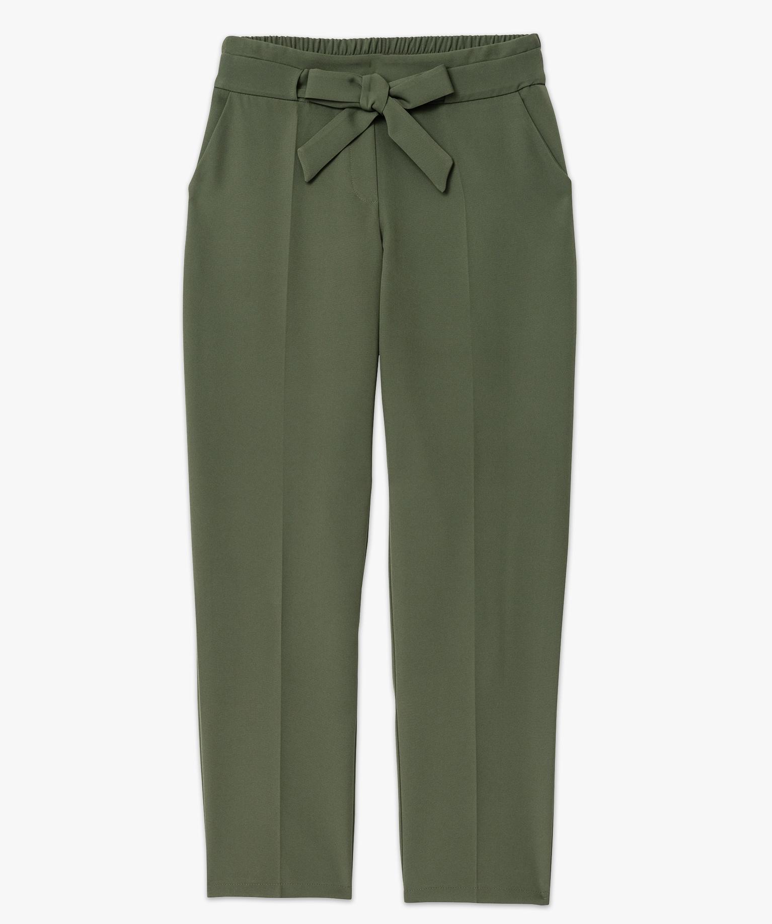 Ajoutez une touche de sophistication à votre dressing avec ce sublime pantalon de costume. Un pantalon fluide aussi élégant que confortable qui affiche une coupe ample légèrement resserrée dans le bas. Des plis marqués assurent à ce pantalon pour femme une allure ultra chic. Il possède une ceinture élastiquée au dos et plate sur l’avant, avantageuse pour la silhouette. Une ceinture plate est cousue à l’intérieur des passants et se noue sur l’avant, ajoutant une touche d’élégance supplémentaire. Ce pantalon de tailleur se porte avec une chemise et une paire d’escarpins. Deux poches italiennes.