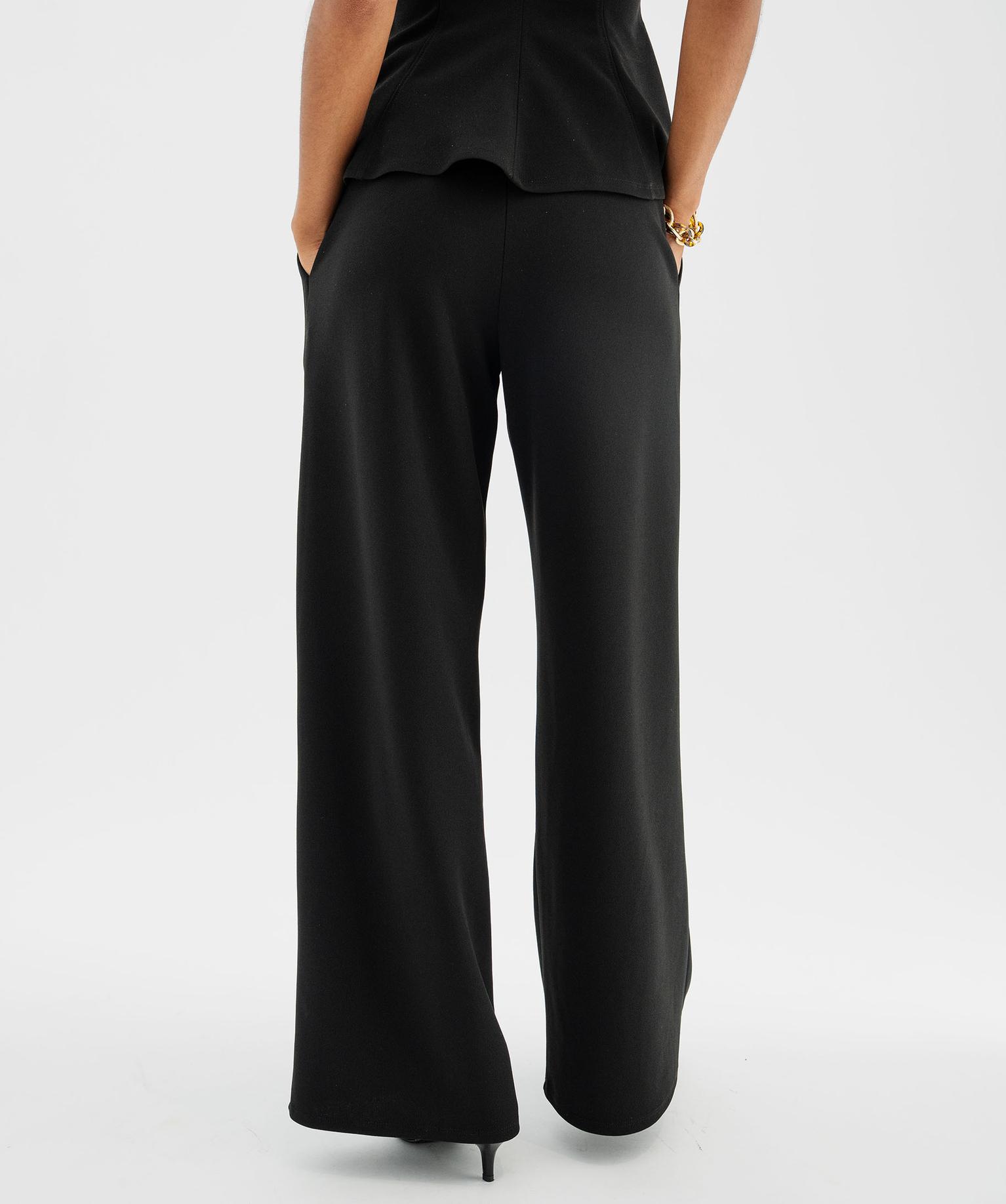 Adoptez une allure à la fois élégante et contemporaine avec ce pantalon de costume pour femme. Sa coupe ample, structurée par des pinces à l’avant, flatte la silhouette tout en assurant un confort optimal. La ceinture élastiquée au dos et les poches italiennes ajoutent une touche pratique. Ce pantalon large possède un joli bouton métallique décoratif et une fausse braguette. Parfait pour composer des looks sophistiqués, il se porte avec un pull ajusté ou une chemise au bureau, ou avec un débardeur et un blazer coordonné pour une soirée chic.