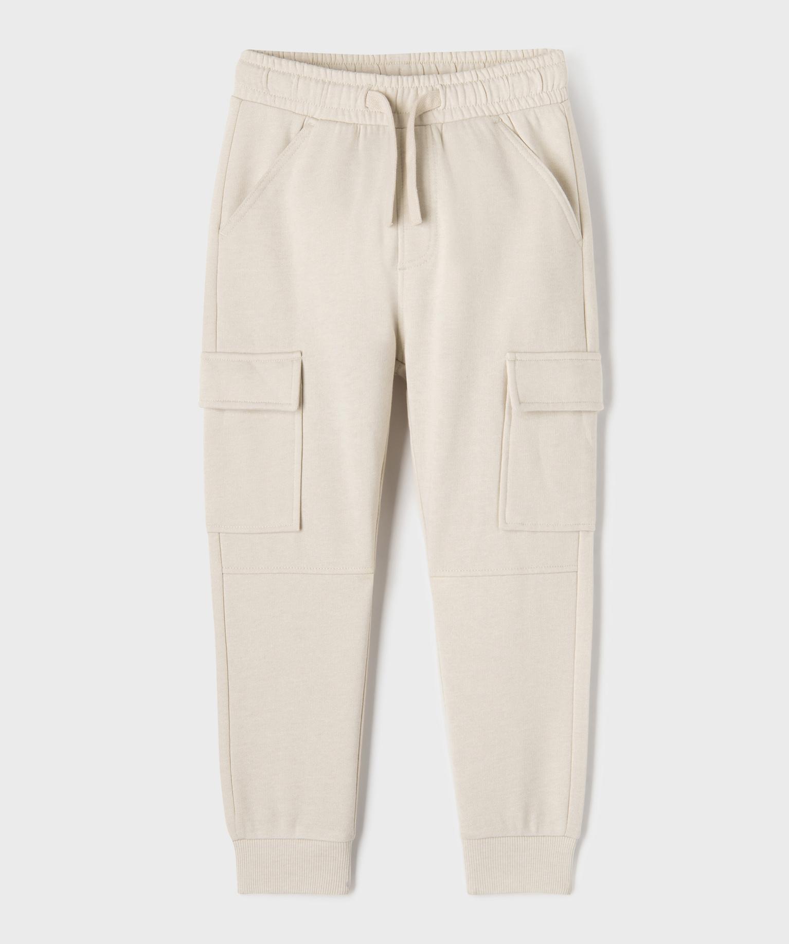 Pas question de renoncer au style, même pendant les entrainements sportifs du week-end ou le sport à l’école ! Grâce à ce pantalon de jogging garçon doté de deux poches à rabat sur les cuisses et d’une surpiqûre au niveau des genoux, les enfants conserveront une allure tendance ! Ce pantalon, avec intérieur molletonné ultra doux et taille élastique ajustable par cordon coulissant, allie style et confort. Il possède également deux poches italiennes et des bord-côtes en bas des jambes. Un pantalon de sport à porter avec un sweat à capuche et des baskets pour être aussi à l’aise dans un stade qu’en ville.