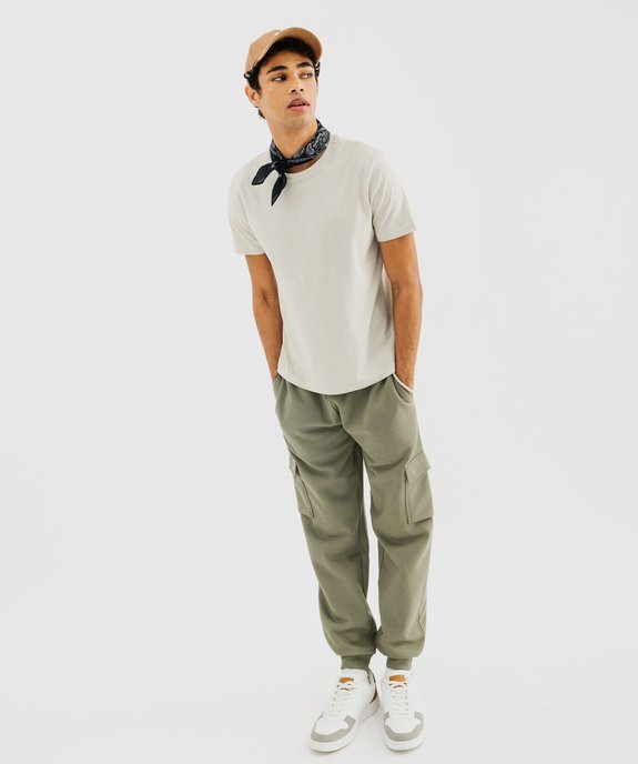À mi-chemin entre le pantalon cargo et le pantalon de sport, ce jogging homme va vous séduire ! Il cumule les bons points en termes de confort et de style. On aime autant sa matière molletonnée chaude et douce à l'intérieur, que sa ceinture élastique ajustable et ses poches latérales à rabat pressionné. Un pantalon à porter au quotidien avec des baskets montantes et une surchemise en jean. 2 poches côtés, 2 poches plaquées sur les cuisses. Finition bord-côte dans le bas.