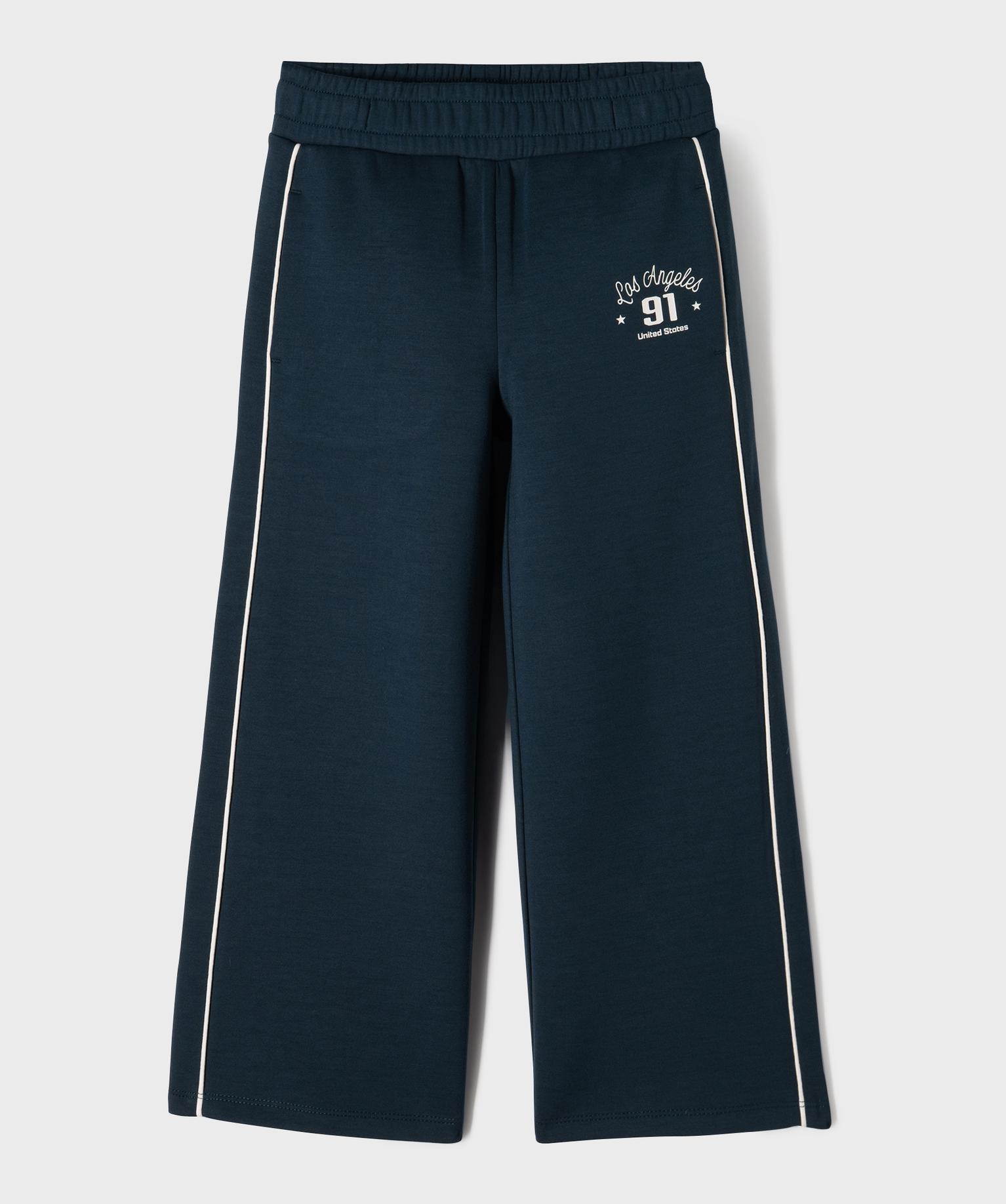 Pantalon de jogging coupe large avec taille ajustable fille bleu fonce
