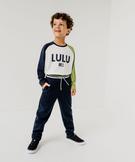 Quand le confort rencontre le style, ça donne ce chouette pantalon en molleton signé Lulu Castagnette ! C'est le complice idéal des journées bien remplies de votre garçon. On adore sa matière souple et sa coupe large qui lui permettent de bouger et sauter en toute liberté. Ce pantalon pour garçon a été pensé pour simplifier le quotidien : sa taille est entièrement élastiquée pour un enfilage rapide, et son cordon de serrage assure un maintien impeccable. Il est également doté de deux poches pratiques et d'un petit écusson signature.