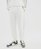 Un pantalon de jogging pour homme, rehaussé de larges bandes contrastantes le long des jambes. Conçu en maille extensible et doté d’une large ceinture élastique ajustable par cordon coulissant, ce jogging offre un confort exceptionnel. Il se porte avec le sweat assorti pour un total look sportif. Le pantalon de sport est pourvu de poches latérales dissimulées dans les coutures et d'une poche raglan à l'arrière. Finition élastiquée aux chevilles. Cordon bicolore avec œillets en métal peint.