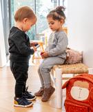 Pratique, confortable et polyvalent, le pantalon de jogging pour bébé garçon se présente en lot de 2 modèles différents : idéal pour composer des looks variés et pour une belle économie à l'achat ! Le pantalon est équipé d'une taille élastiquée ajustable par cordon coulissant. La coupe est légèrement resserrée dans le bas par bord-côte. Hyper confort, le jogging est fabriqué en molleton fin et tout doux.