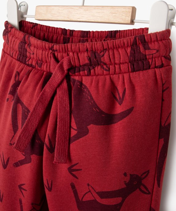Le pantalon de jogging molletonné revient dans une version imprimée pour ajouter une touche de fantaisie dans le vestiaire des petits garçons. Un basique revisité mais toujours aussi confortable avec sa taille élastique ajustable par cordon coulissant et ses bas de jambes resserrés par un élastique. Un pantalon bébé garçon à porter avec un sweat à capuche et des baskets.