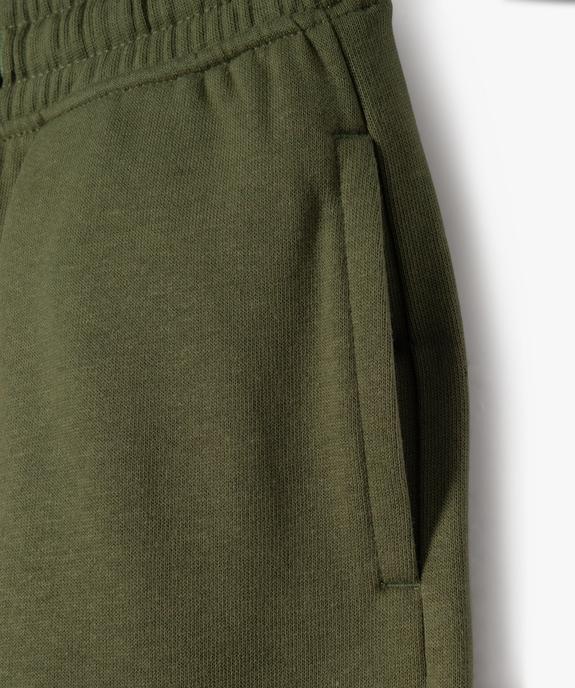 On aime ce pantalon qui allie le meilleur de deux mondes : le style d'un cargo et l'aisance d'un jogging ! Conçu dans une matière molletonnée, ce pantalon pour garçon adopte une coupe large qui assure une grande liberté de mouvement. Il est super pratique avec sa taille élastiquée qui s'ajuste parfaitement grâce à un cordon de serrage. Avec ses quatre poches, dont deux grandes poches à rabat sur les cuisses, il y a toute la place pour garder ses petites trouvailles. Les finitions en bord-côte aux chevilles assurent un bon maintien et une jolie silhouette.