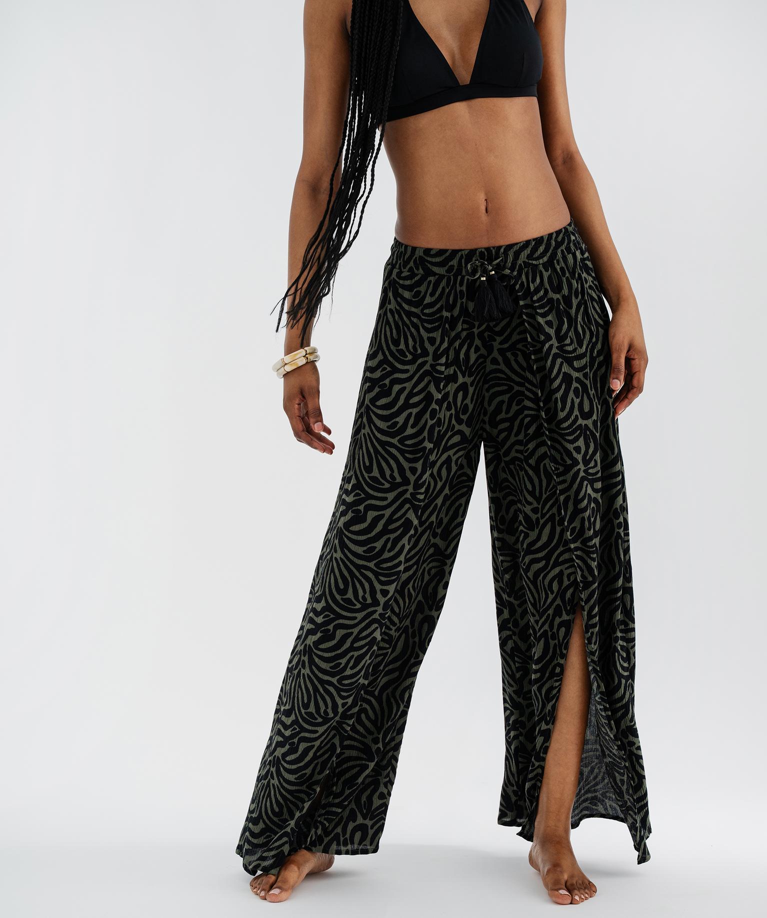 Pantalon de plage large et fluide femme kaki