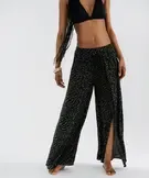 - Coupe ample et fluide, ouverte le long des jambes