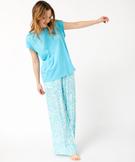 Pantalon de pyjama ample à motifs fleuris femme bleu
