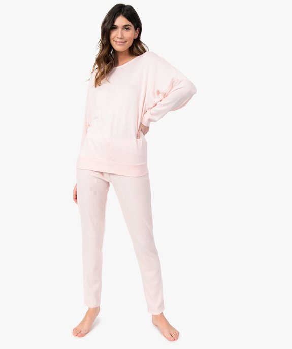 Pantalon de pyjama femme en maille côtelée rouge clair