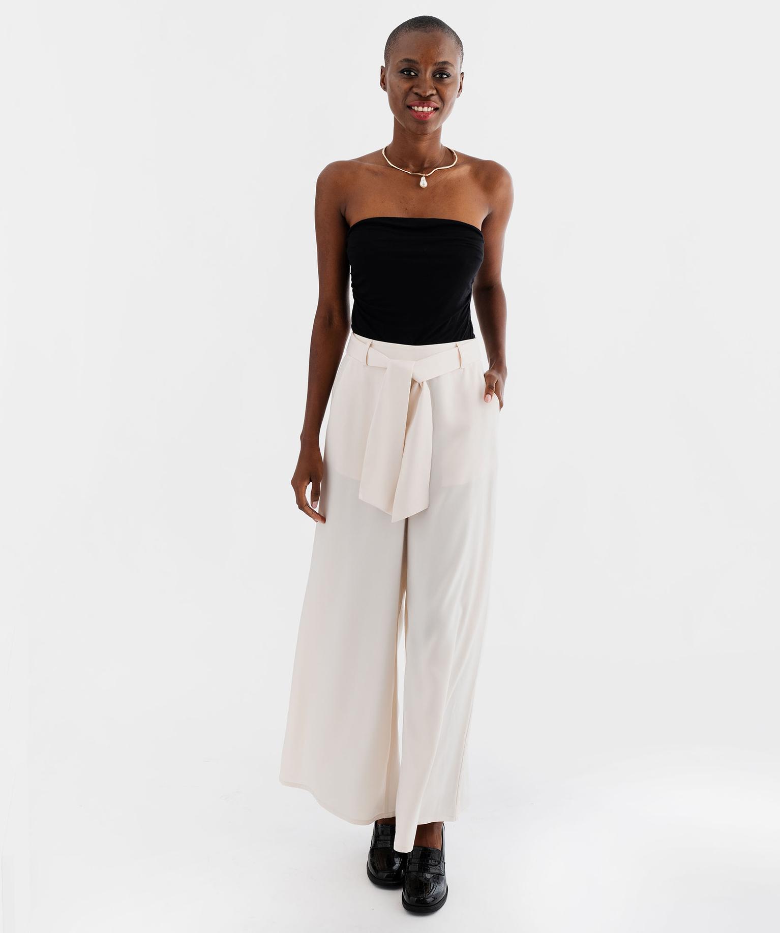 Pantalon de soirée large en satin avec ceinture femme blanc chine