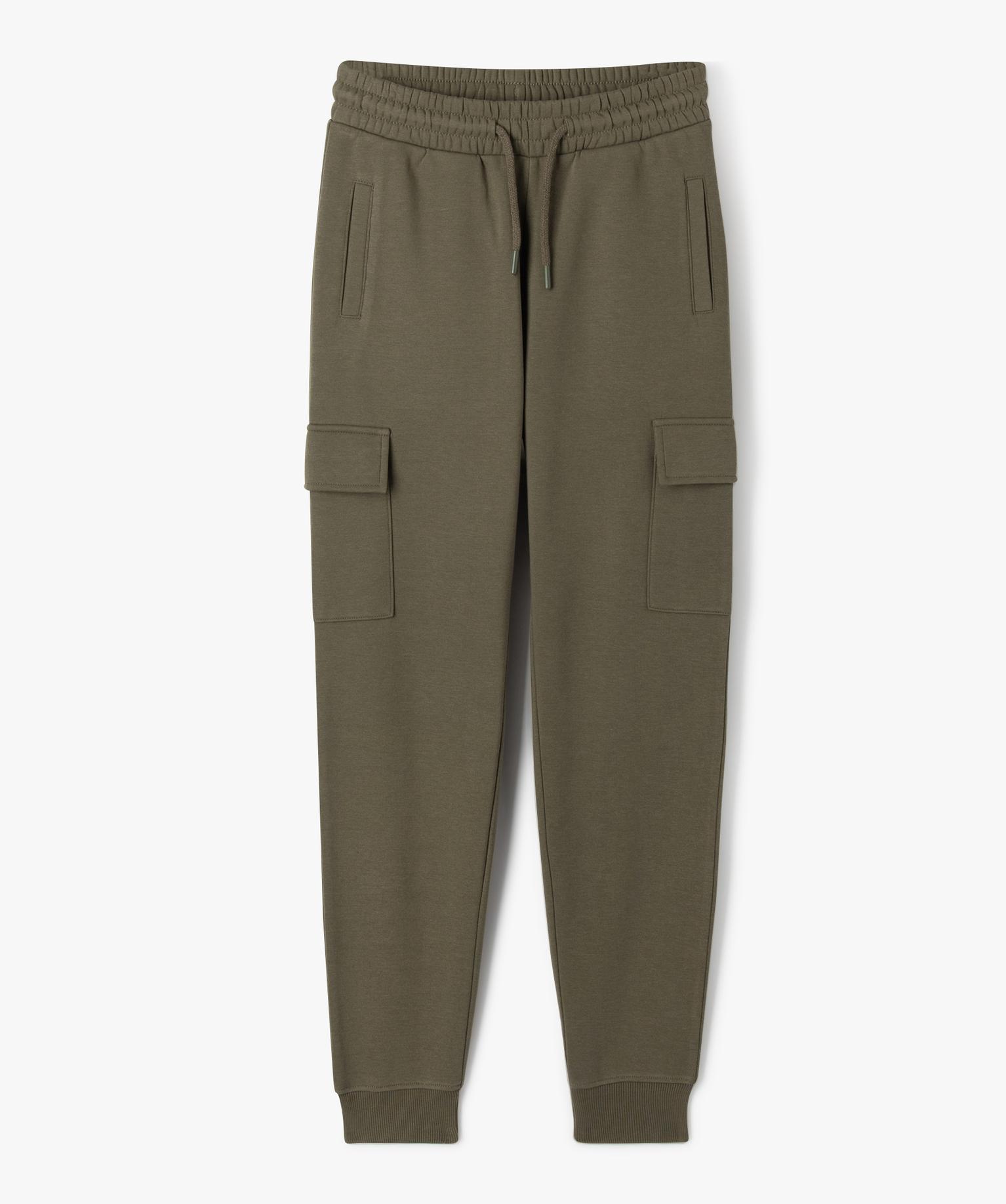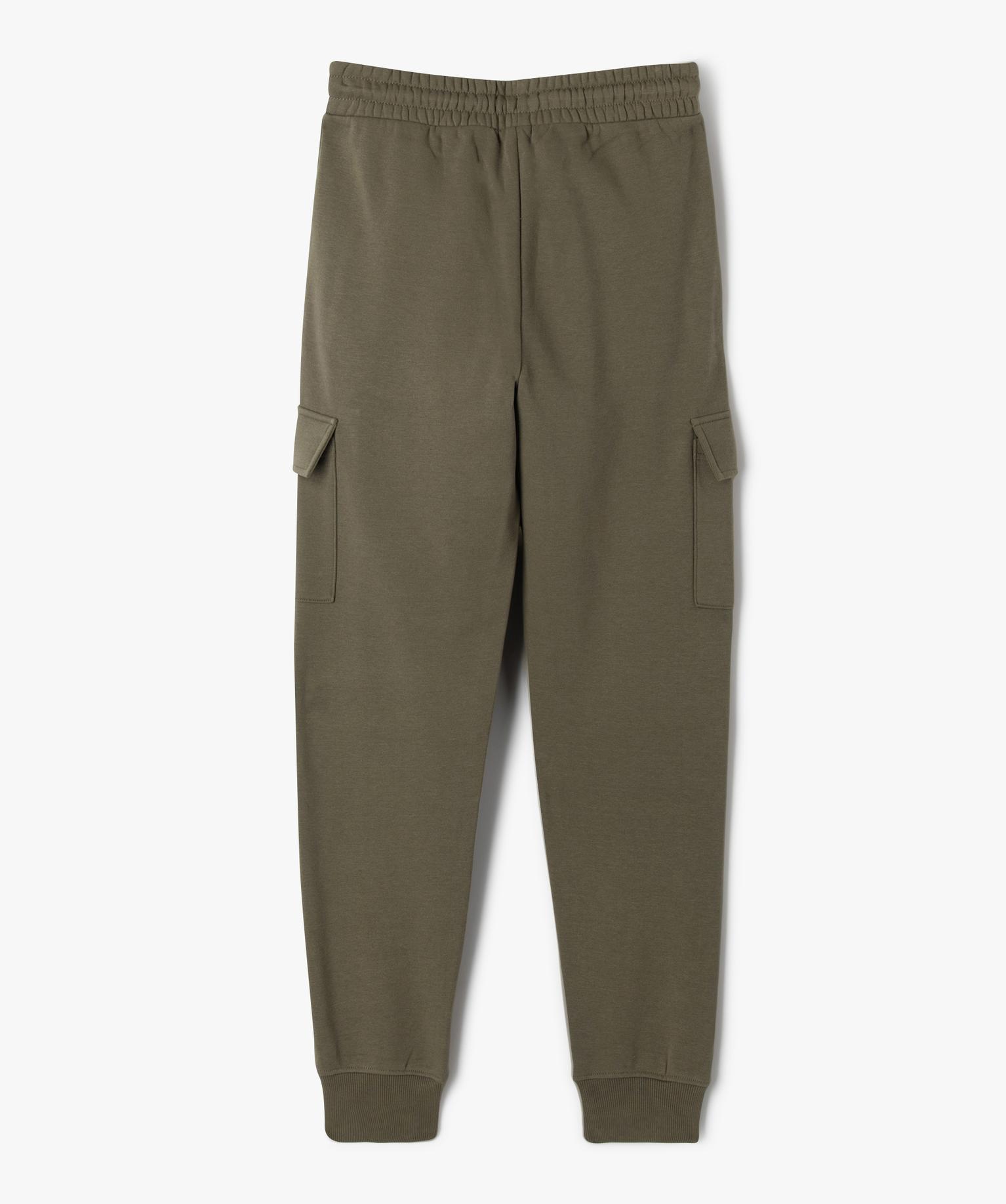 Petit look cargo casual pour les jeunes filles grâce à ce pantalon de sport à poches. Des poches à rabat placées sur les cuisses ajoutent une touche de style supplémentaire. Le pantalon en jersey molletonné possède également 2 poches raglan sur les côtés. Ce pantalon de jogging fille est idéal pour un look décontracté ou pour faire du sport à l'extérieur. Pratique, le jogging possède une taille élastiquée ajustable par cordon coulissant et des bas de jambes resserrés par bord-côte.