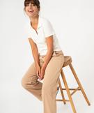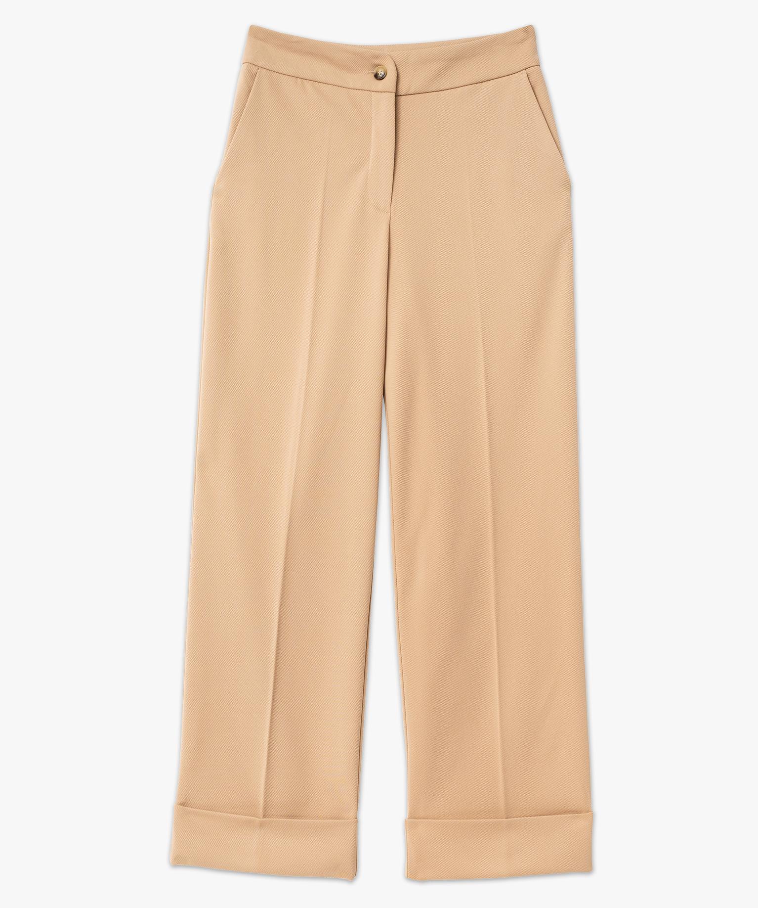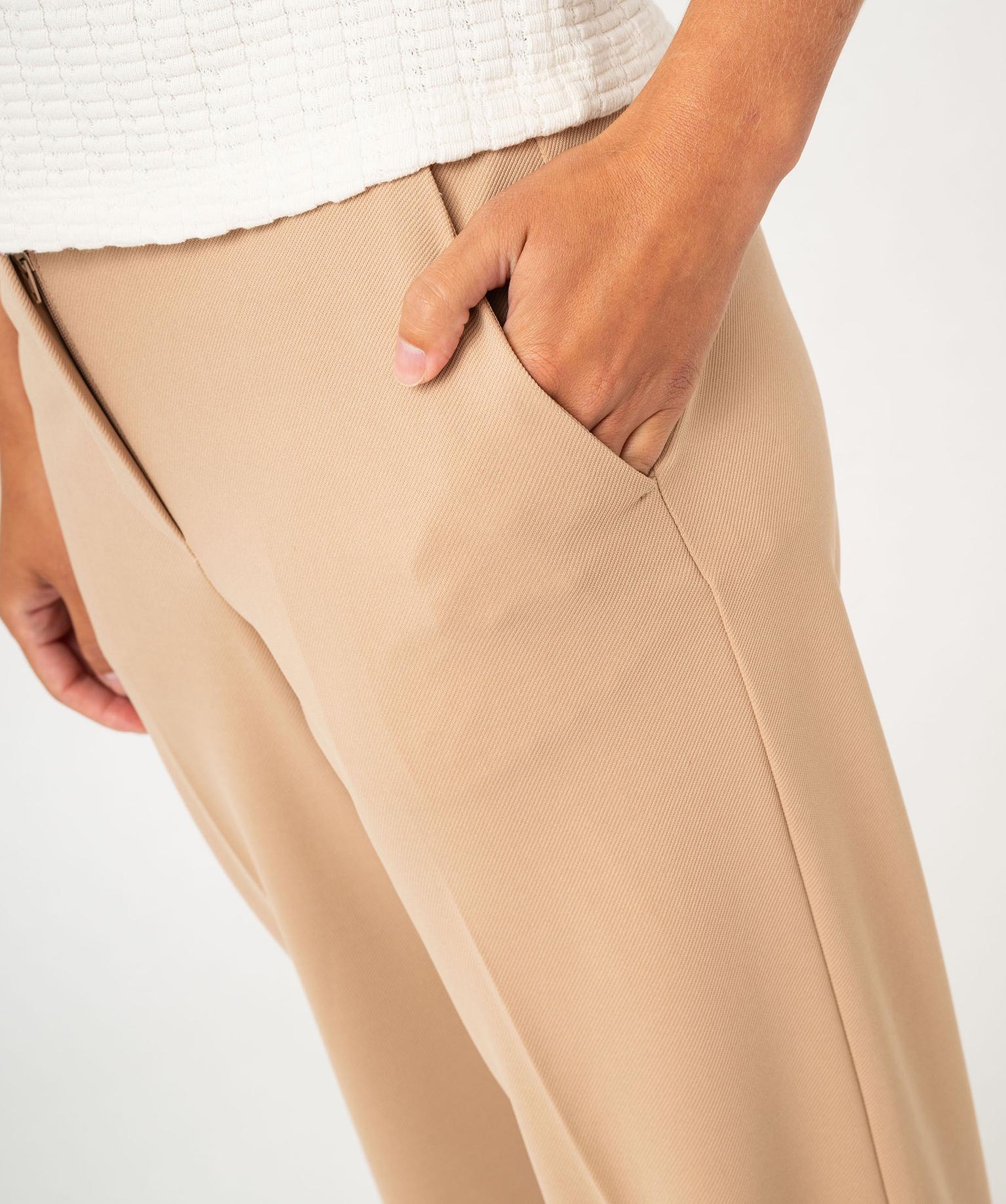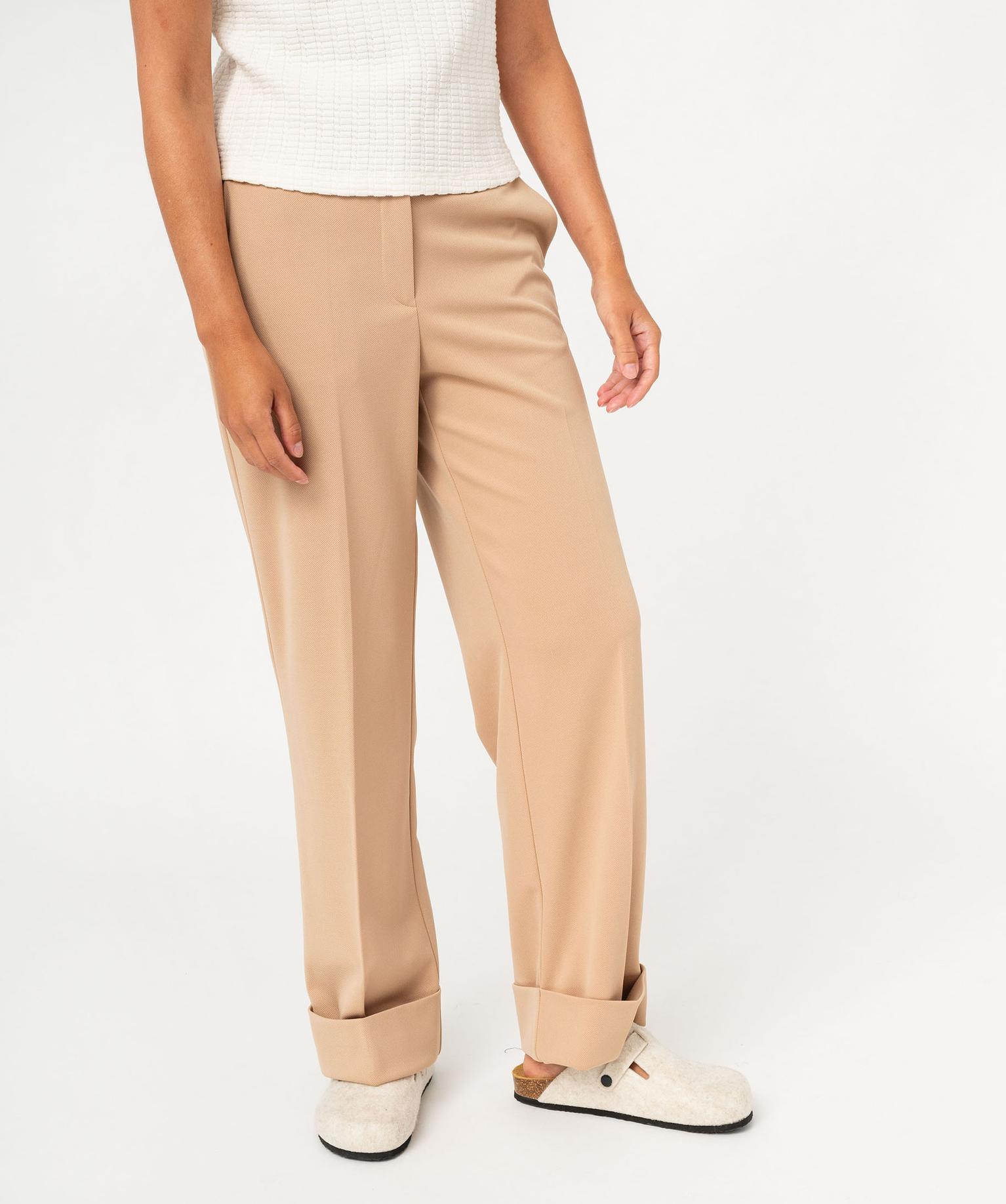 Pantalon de tailleur droit en maille souple femme beige