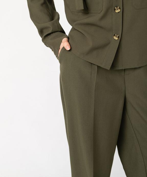 Ce pantalon pour femme à la jambe large et souple vous offrira beaucoup de confort et de style. Son pli le long de la jambe ajoute une note de sophistication. Dans un esprit masculin-féminin, il sera superbe avec un blazer et une blouse pour aller au bureau. Vous pourrez aussi le porter comme pantalon de soirée avec un haut pailleté et des escarpins.