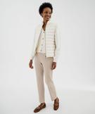 Confort et élégance pour ce pantalon droit en maille stretch imprimée chevrons ! Confectionné en viscose extensible, le pantalon femme séduit par sa douceur et sa fluidité. Il est équipé d'une taille plate sur le devant (avec 2 liens à nouer) et élastiquée au dos. Son motif chevrons apporte une touche graphique chic et intemporelle. Le pantalon est doté de 2 poches italiennes et de 2 fausses poches passepoilées au dos pour une finition soignée. œillets métal.