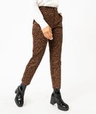 Pantalon droit en toile extensible imprimé léopard femme peau de bete
