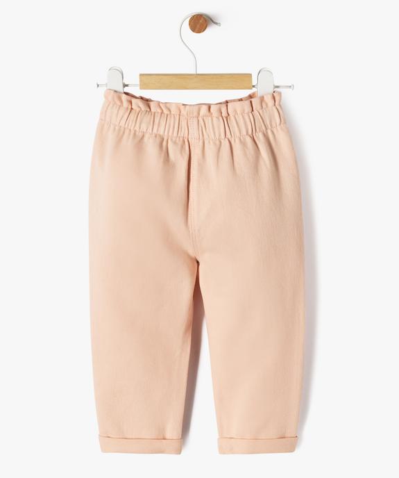 Ce pantalon en coton décliné dans des coloris tendres apportera une touche de fraicheur dans le vestiaire estival des minis ! Un pantalon bébé fille particulièrement confortable doté d’une ceinture élastique ajustable grâce à un second élastique invisible. Un modèle indispensable du vestiaire à associer tantôt avec un tee-shirt et des baskets pour une allure décontractée, tantôt avec une blouse fleurie et des ballerines pour un look girly. Fermeture bouton pression. Deux poches sur l'avant.