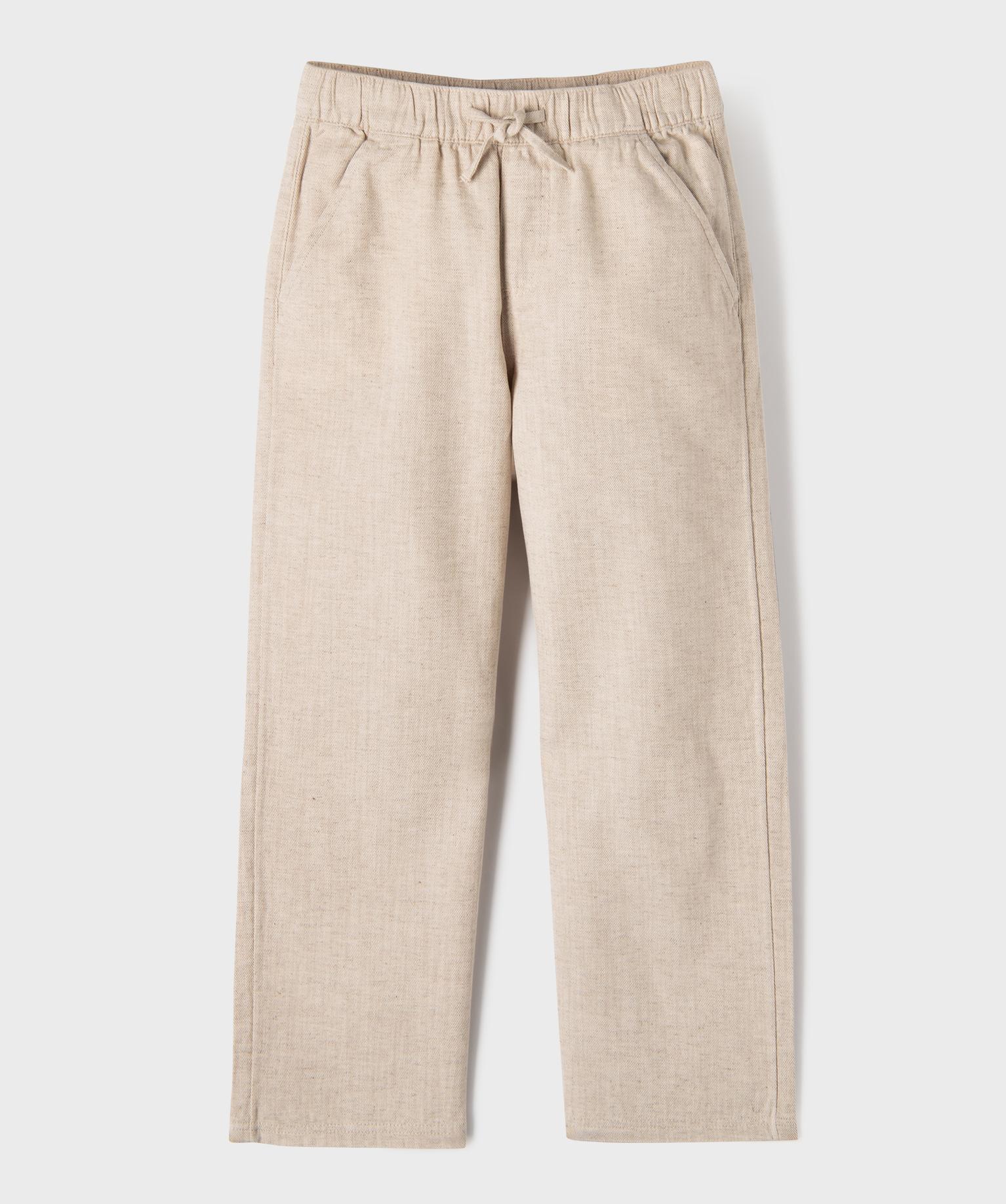 Pantalon en coton et lin avec taille ajustable garçon beige chine