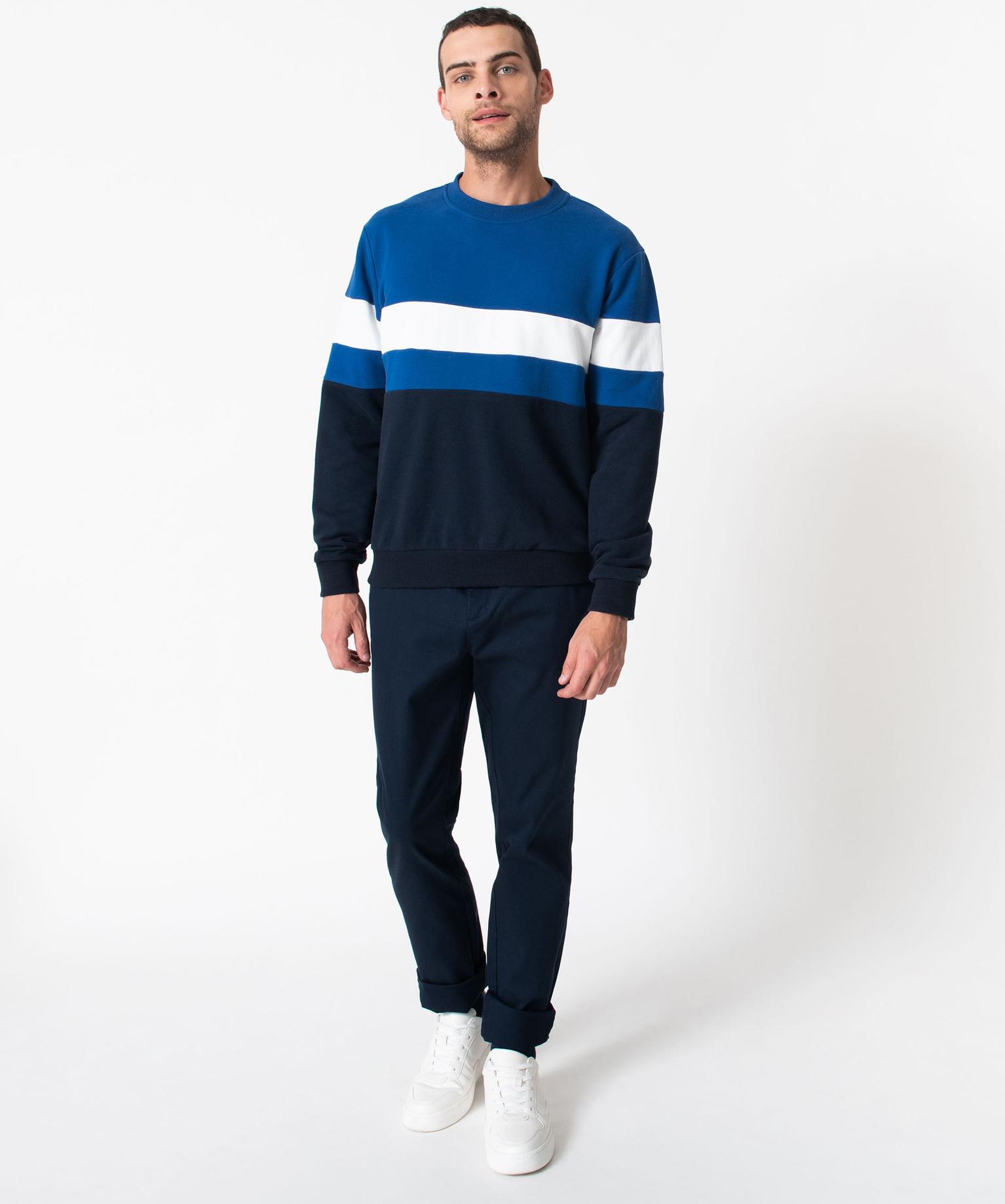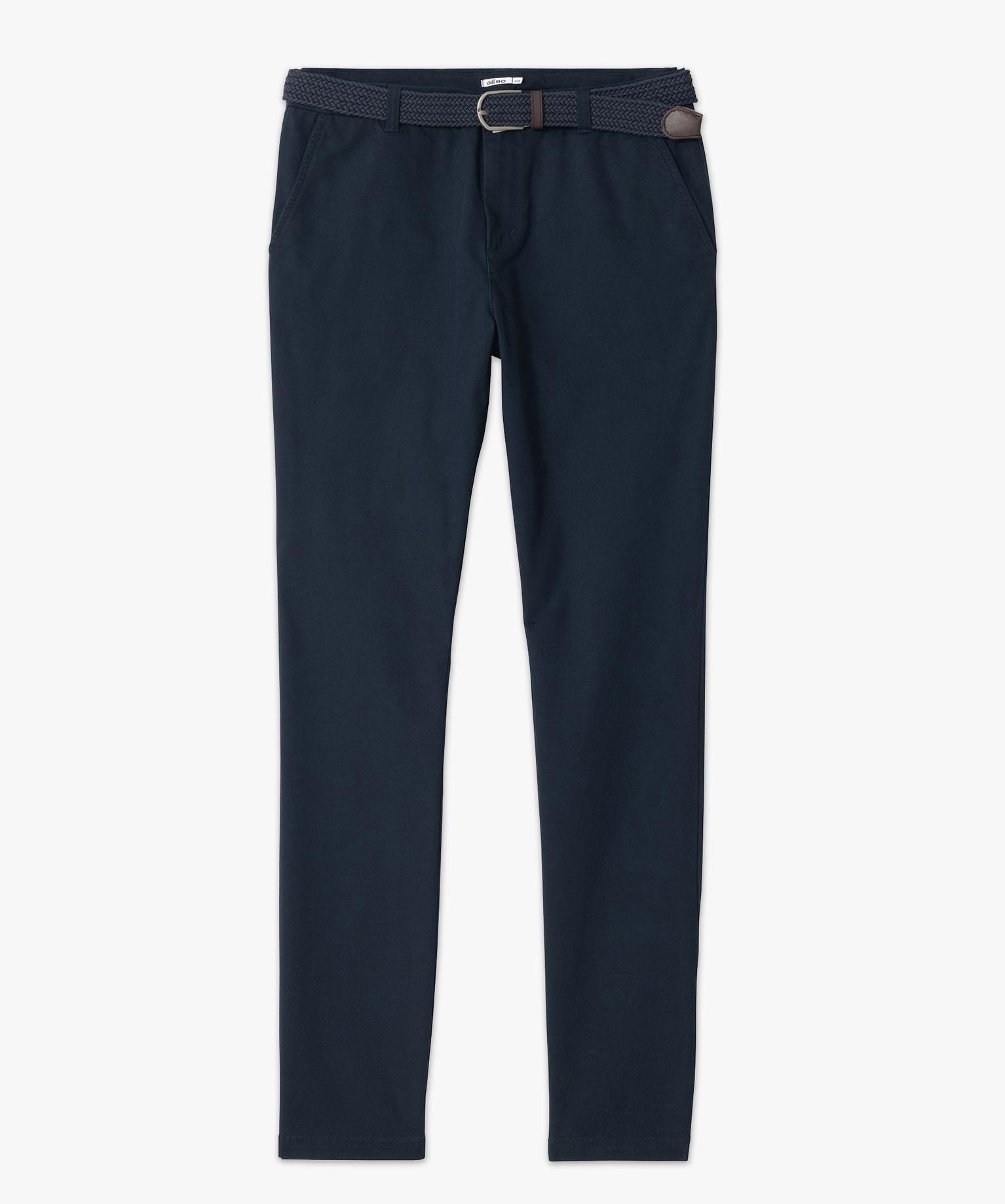 Pantalon en coton homme avec ceinture tressée bleu marine
