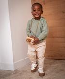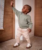 Avec son allure casual travaillée et sa toile denim colorée, ce pantalon bébé garçon est adorable. Il accompagne votre bambin au quotidien en lui offrant un grand confort grâce à sa matière extensible et sa taille élastique ajustable à la fois par élastique intérieur et cordon coulissant. Le pantalon affiche de jolies finitions : passepoil à l'entrée des poches, boutons fantaisie sur la braguette et poche plaquée au dos. Un joli pantalon à porter retroussé avec des baskets à scratch et un sweat à motifs.