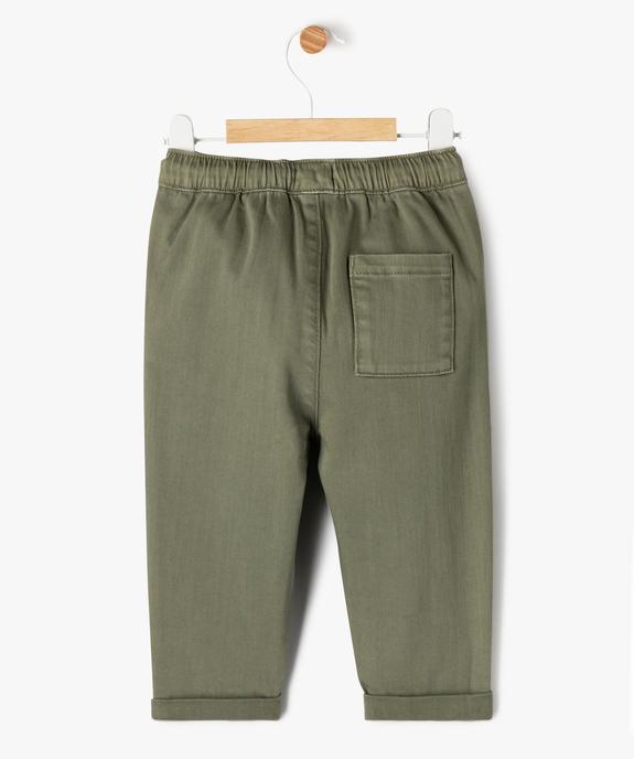 Avec son allure casual travaillée et sa toile denim colorée, ce pantalon bébé garçon est adorable. Il accompagne votre bambin au quotidien en lui offrant un grand confort grâce à sa matière extensible et sa taille élastique ajustable à la fois par élastique intérieur et cordon coulissant. Le pantalon affiche de jolies finitions : passepoil à l'entrée des poches, boutons fantaisie sur la braguette et poche plaquée au dos. Un joli pantalon à porter retroussé avec des baskets à scratch et un sweat à motifs.