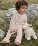 Pantalon en maille côtelée à doublure fourrure imitation bébé fille rose