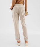 Vous allez succomber au charme rétro de ce pantalon à micro motifs ! Un pantalon femme en maille souple, au tomber impeccable, à la fois chic et confortable. Sa coupe straight convient à toutes les morphologies et se marie aussi bien avec une chemise, un pull, une blouse ou un blazer. Il possède une ceinture élastiquée sur l’arrière et s’ajuste grâce à des liens à nouer sur l’avant. Il est équipé de poches italiennes et de fausses poches raglan sur l’arrière. Un pantalon en toile extensible avec revers cousus dans le bas, très chic sur des escarpins, et ultra tendance avec des baskets.