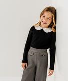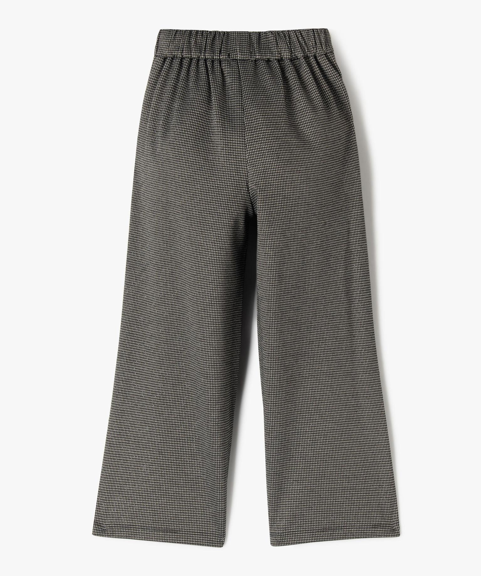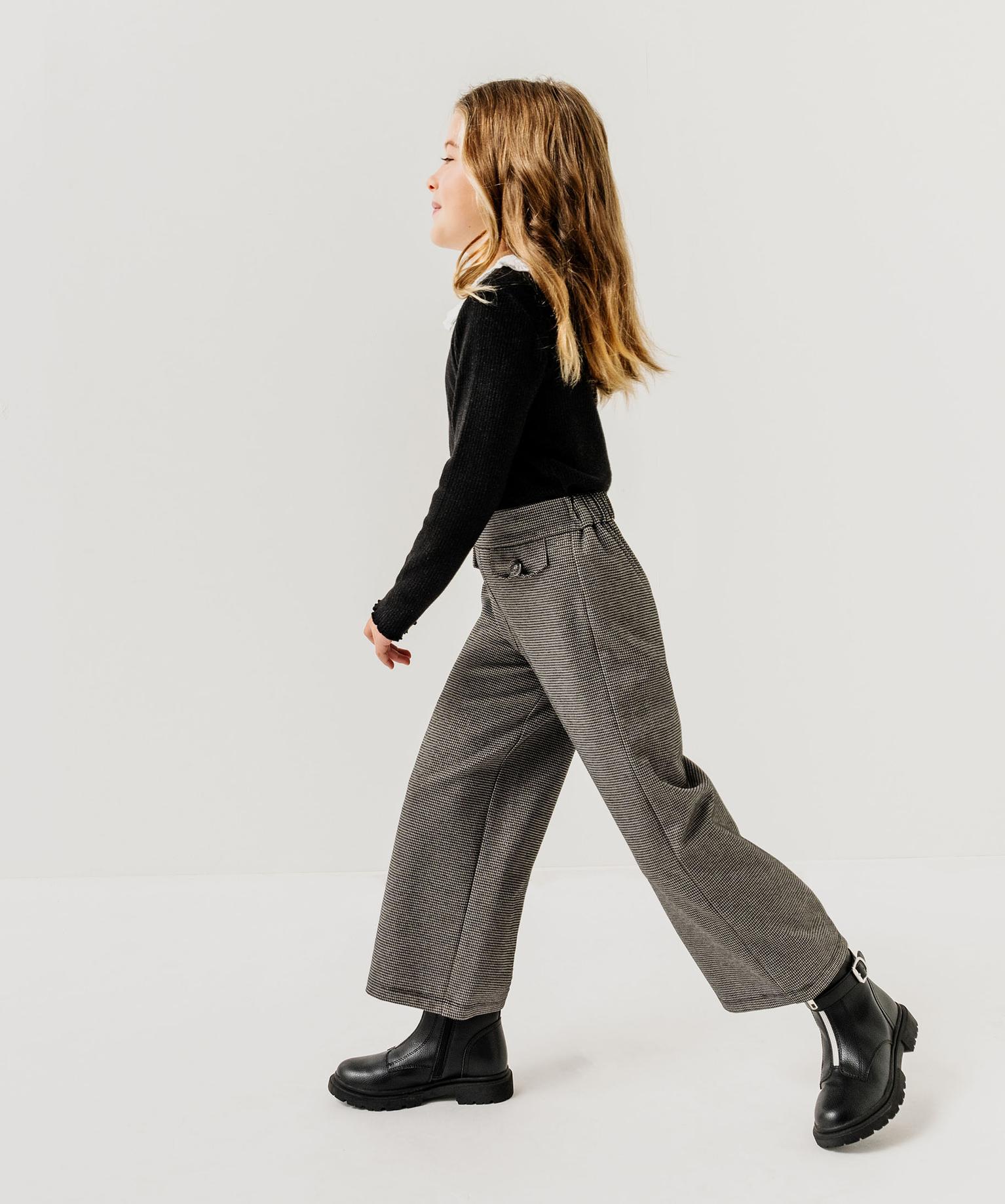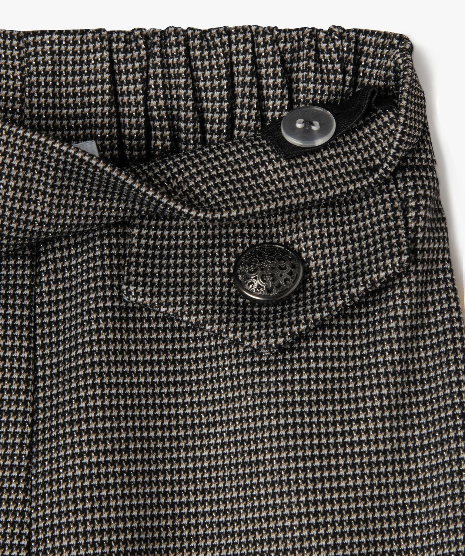 Ce sublime pantalon en maille à motif pied de puce permettra de créer des looks ultra chics pour les petites filles. Incrusté de fil pailleté, il ajoutera une touche d’éclat dans le vestiaire des jeunes fashionistas. Ce pantalon large possède une ceinture plate, élastiquée au dos pour faciliter l’habillage. Il est agrémenté de fausses poches ornées de boutons fantaisie en métal. Un pantalon fille à porter aussi bien avec une chemise à col Claudine qu’avec un pull à col roulé.