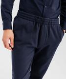 Parfait pour composer de jolies tenues casual chic, le pantalon en maille sergée ! Un pantalon pour homme conçu pour privilégier le confort, arborant une coupe straight resserrée aux chevilles et une taille élastique ajustable à l'aide d'un cordon coulissant invisible. La maille présente un effet sergé pour une allure chic. Ce pantalon possède deux poches italiennes, 2 poches plaquées au dos et une fausse braguette surpiquée.