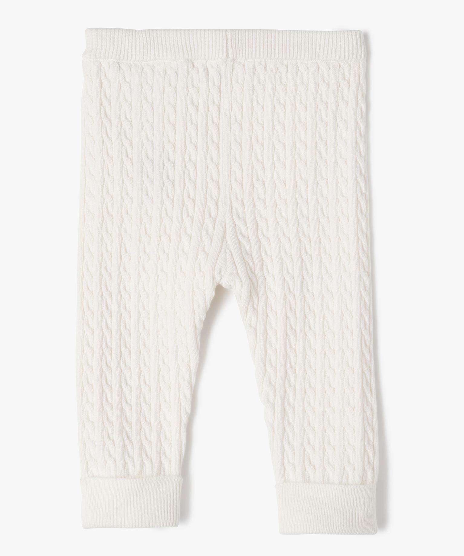 Assurez le confort de bébé et son style dès les premiers jours avec le pantalon tricoté ! Craquez pour ce lot de 2 pantalons en maille torsadée avec revers en bas de jambe. Des pantalons majoritairement en coton, à la coupe près du corps pour garder la chaleur et laisser à bébé toute sa liberté de mouvements. La taille est élastiquée pour un enfilage rapide et un maintien idéal. Des pantalons bébé tout mignons à porter avec un gilet brassière en tricot, un sweat ou une blouse. Finition bord-côte à la taille et aux revers.