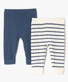Une version inédite du pantalon en maille, tricoté dans une maille torsadée, qui affiche un look réconfortant. Ce lot de 2 pantalons bébé permet de créer des looks confortables pour les garçons et les filles. Ils possèdent une ceinture élastiquée facile à enfiler et des revers cousus en bas de jambes pour une touche de style supplémentaire. Des pantalons torsadés à porter avec un pull ample ou un sweat à capuche.