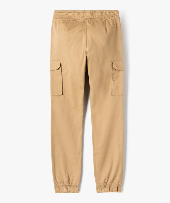 Le pantalon jogger est devenu une pièce forte du dressing des garçons. Ils apprécient sa coupe confortable, ses larges poches à rabat sur les cuisses et ses bas de jambes resserrés par un large élastique. Ce pantalon garçon possède une taille élastiquée ajustable par cordon coulissant. Un pantalon en toile uni à associer à un sweat à capuche pour un look streetwear réussi ! Deux poches italiennes.