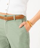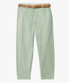 Pantalon en twill de coton avec ceinture tressée femme vert
