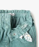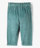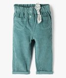 Craquez pour le style réconfortant de ce pantalon pour bébé fille confectionné dans un velours côtelé au coloris girly. Ce pantalon affiche une coupe confortable, hanches larges et jambes resserrées dans le bas. Il est monté sur une large ceinture élastiquée ajustable par élastique intérieur et se ferme par deux boutons pression. Deux petites poches plaquées sur l’avant un noeud en jersey fleuri apportent une discrète touche de fantaisie à ce joli pantalon en velours. Il se porte avec une blouse fleurie et un gilet en grosse maille. Passants pour ceinture.