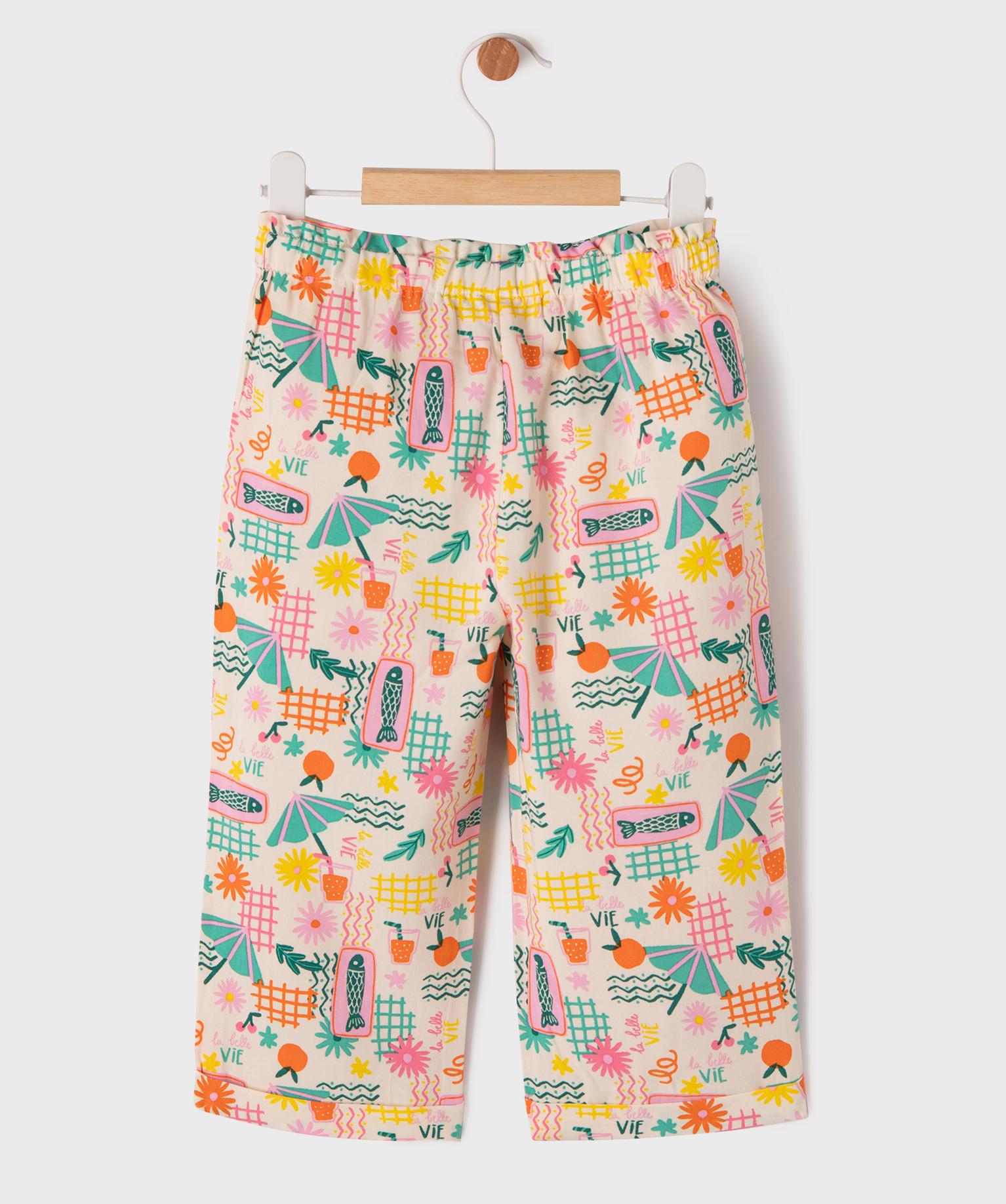Apportez une touche estivale et coloré au dressing de votre fillette avec ce pantalon fluide en viscose ! Sa coupe large et sa taille paper bag assurent un confort optimal et un enfilage en un clin d'œil. Le pantalon bébé fille présent des revers cousus en bas de jambe pour une finition soignée. Le tissu, léger et aérien, est orné de motifs colorés et joyeux, pour une touche fantaisie très graphique. Il se porte avec le petit débardeur de la même collection pour un bel ensemble. Le pantalon sera aussi mis en valeur par un tee-shirt uni tout simple.