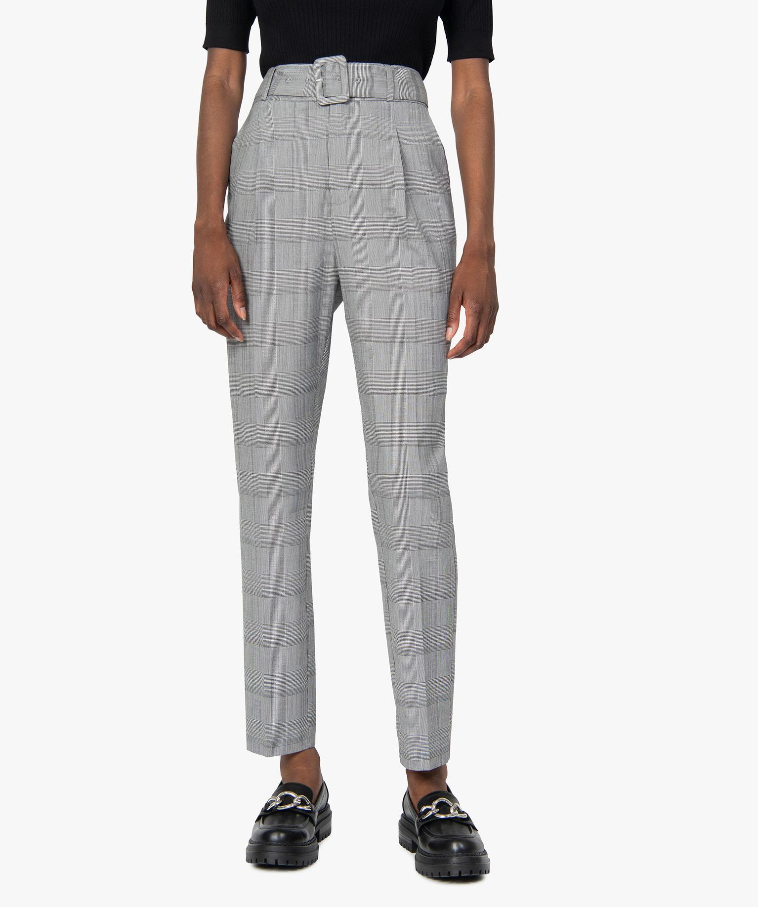 Pantalon femme à motif Prince de Galles taille haute multicouleur