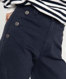 L’incontournable pantalon à pont revisité par LuluCastagnette. Un pantalon femme qui associe une taille haute et une coupe large totalement tendance. Il est agrémenté de gros boutons fantaisie en métal qui soulignent les hanches sur l’avant Ce pantalon large s’associe à un tee-shirt côtelé à la coupe ajustée. Fermeture par zip et bouton. Passants pour ceinture. 2 poches plaquées au dos.