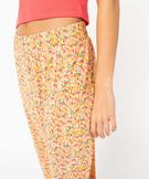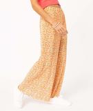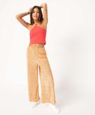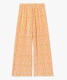 Pantalon femme ample plissé à fleurs jaune