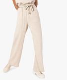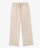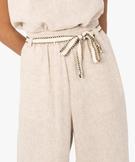 Pantalon femme contenant du lin avec ceinture à nouer beige clair