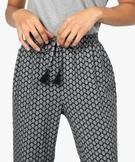 Un pantalon fluide que vous ne voudrez plus quitter tant il est confortable. Vous serez séduite par sa matière 100% viscose très douce. Ce pantalon femme possède une taille élastiquée pour un habillage facile et pour s’adapter à toutes les silhouettes, sur l’avant un petit cordon à nouer avec finitions pompons apporte une touche de fantaisie. Vous aurez le choix parmi différents motifs imprimé qui mettront de la bonne humeur dans votre dressing. Un pantalon d'été à porter avec un top à bretelles et des sandales à semelle compensée.
