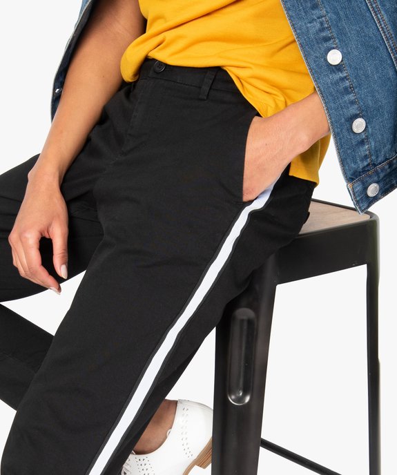 Pantalon femme en toile avec bande contrastante sur le côté noir