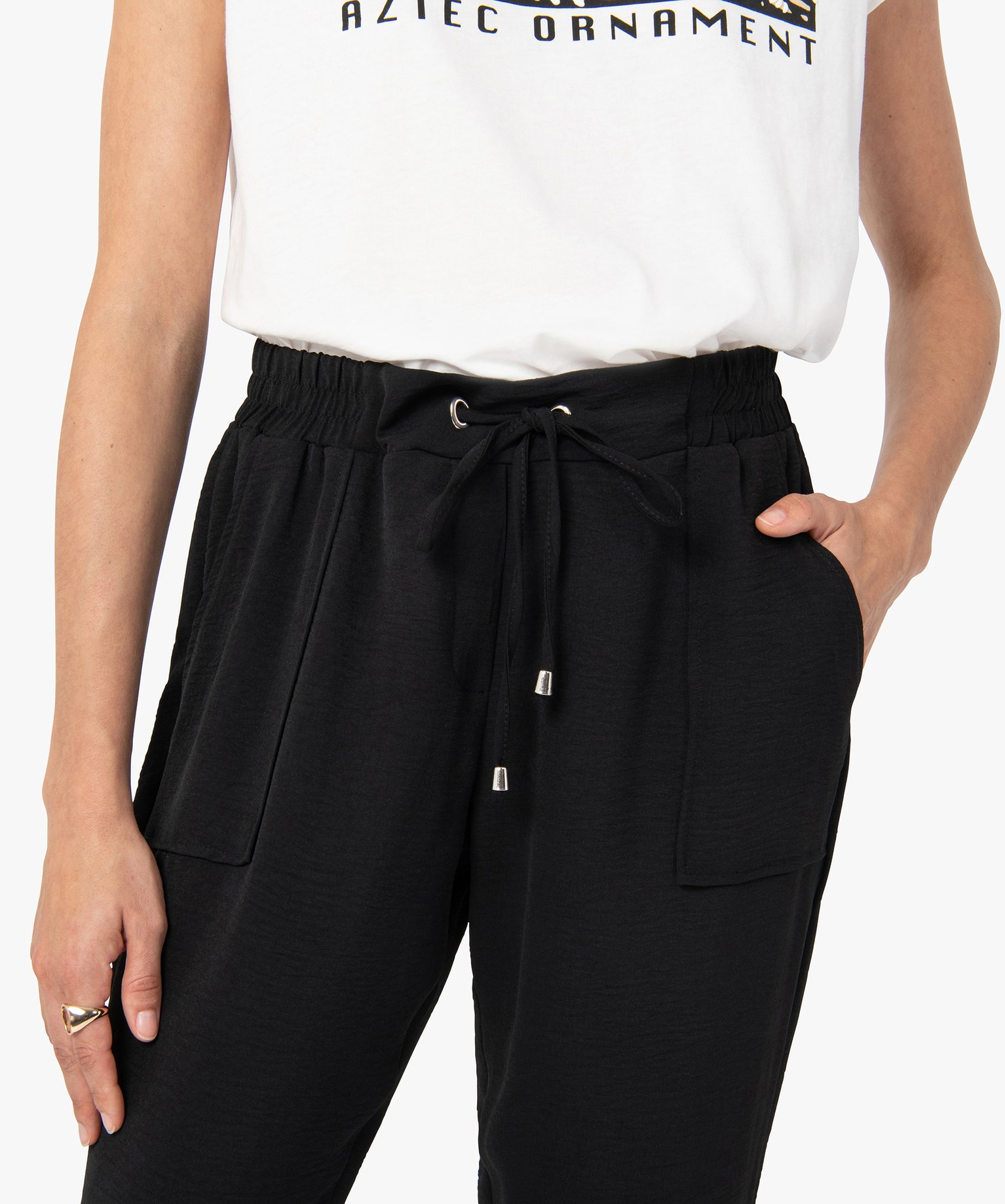 - Ceinture élastiquée ajustable par cordon de serrage