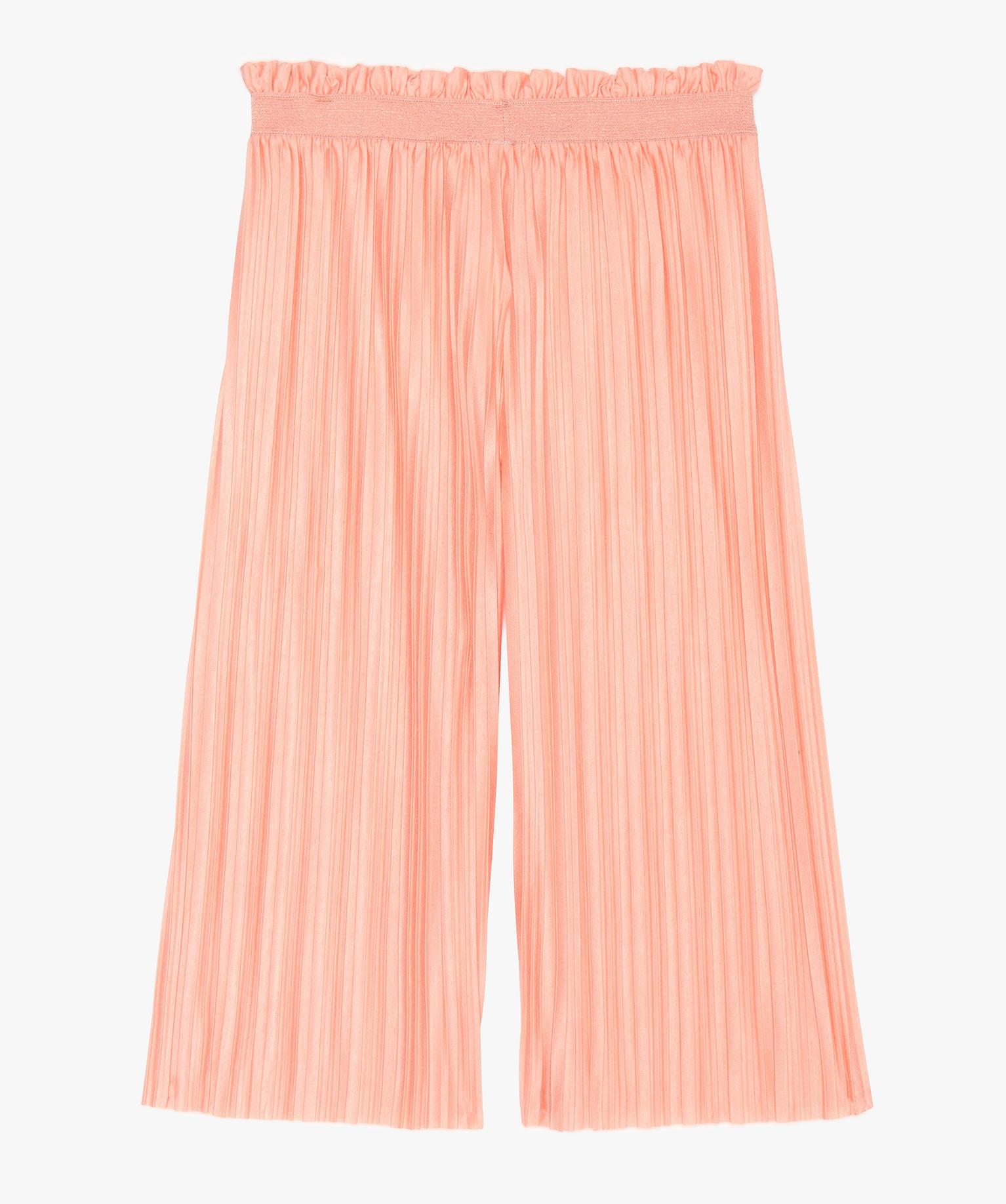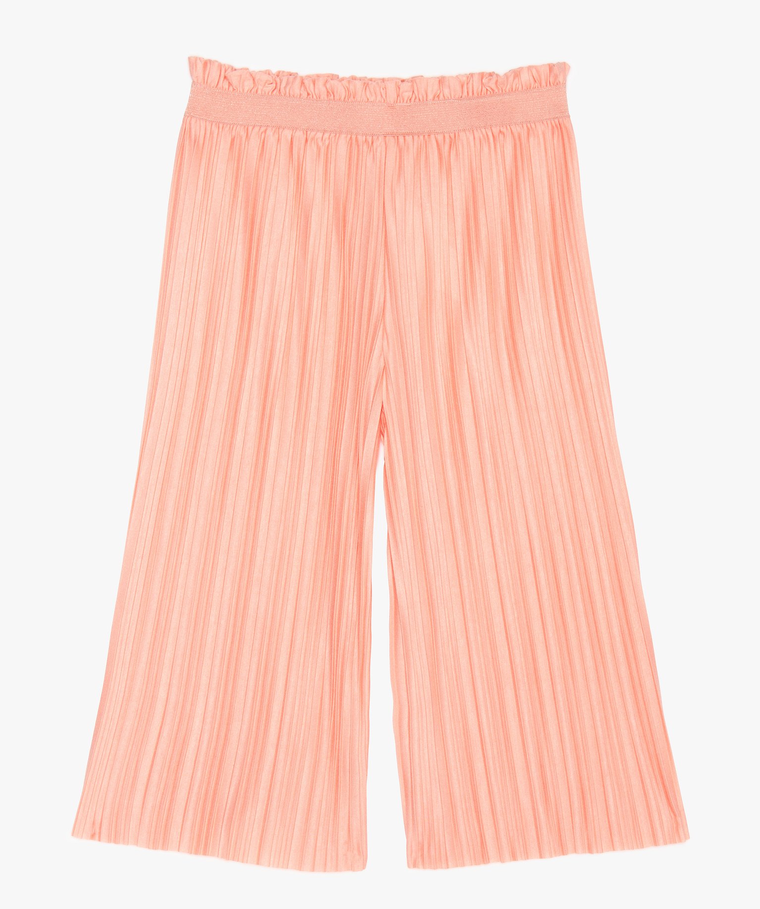 Pantalon fille ample et plissé à taille élastiquée orange clair