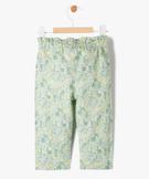 Pour ajouter une note de romantisme et d'éclat aux tenues des petites filles, ce pantalon en coton léger est orné de motifs floraux et rehaussé par de délicates touches scintillantes. Ce pantalon bébé fille présente une coupe confortable avec une ceinture élastique pour garantir un maximum de confort aux tout-petits. Il est agrémenté d’une petite cordelette nouée à la taille, incrustée de fil pailleté. Ce pantalon fleuri se porte avec la blouse à bretelles assortie ou avec un tee-shirt uni.