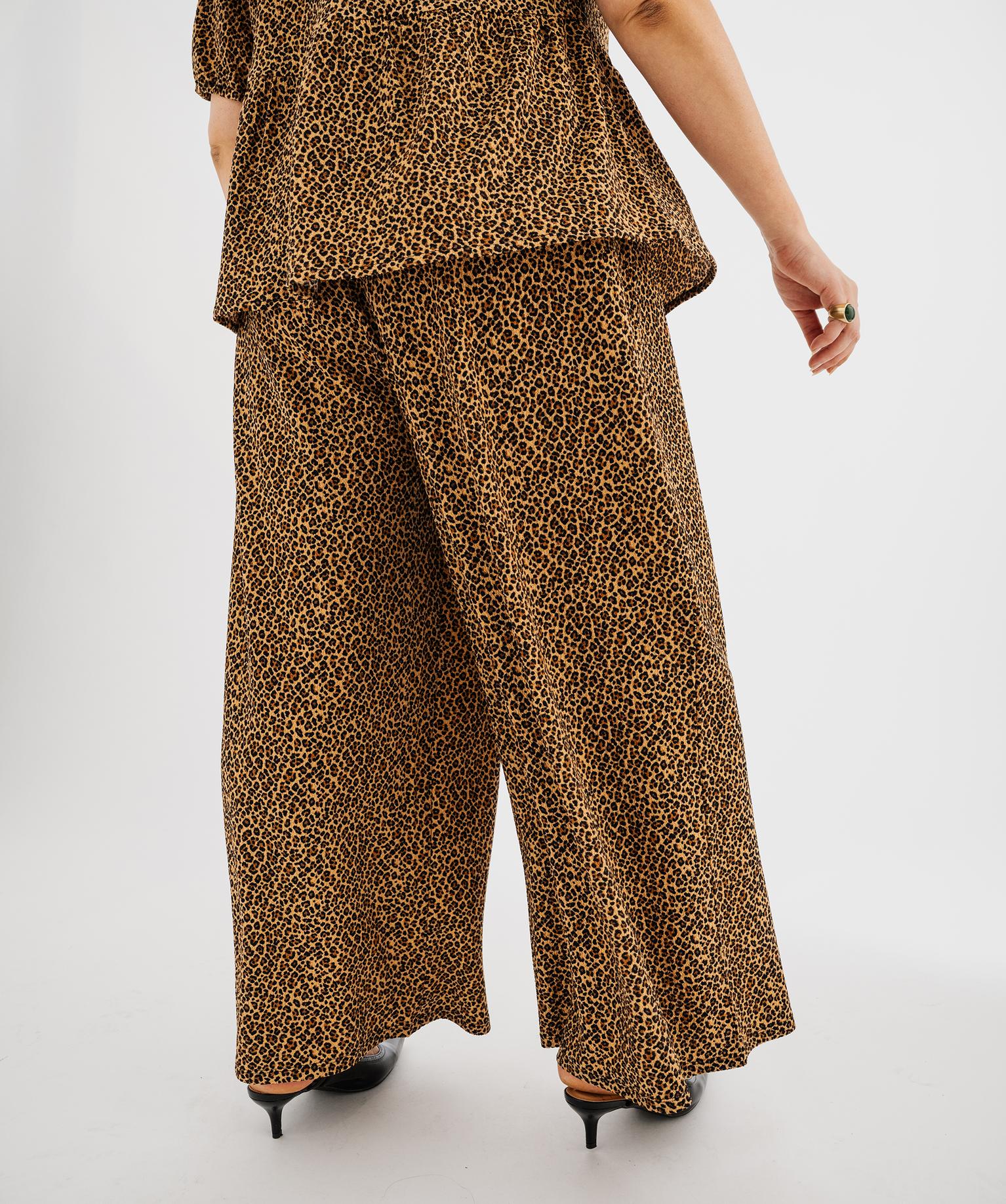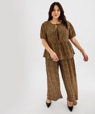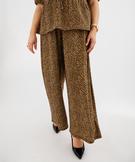 Pantalon fluide en maille gaufrée à motif léopard femme grande taille marron