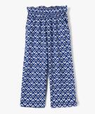 Ce charmant pantalon imprimé ajoute une touche dynamique aux tenues des filles grâce à ses couleurs contrastantes et à ses motifs graphiques. Confectionné en viscose fluide, il affiche une coupe large, à la fois confortable et tendance. Doté d’un large élastique à la taille, agrémenté de petites fronces, il permet un habillage facile. Ce pantalon fille s'harmonise parfaitement avec un tee-shirt uni et une paire de sandales à brides, créant ainsi un ensemble élégant. Deux poches latérales.