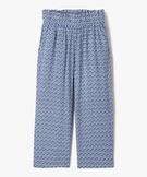 Ce charmant pantalon imprimé ajoute une touche dynamique aux tenues des filles grâce à ses couleurs contrastantes et à ses motifs graphiques. Confectionné en viscose fluide, il affiche une coupe large, à la fois confortable et tendance. Doté d’un large élastique à la taille, agrémenté de petites fronces, il permet un habillage facile. Ce pantalon fille s'harmonise parfaitement avec un tee-shirt uni et une paire de sandales à brides, créant ainsi un ensemble élégant. Deux poches latérales.