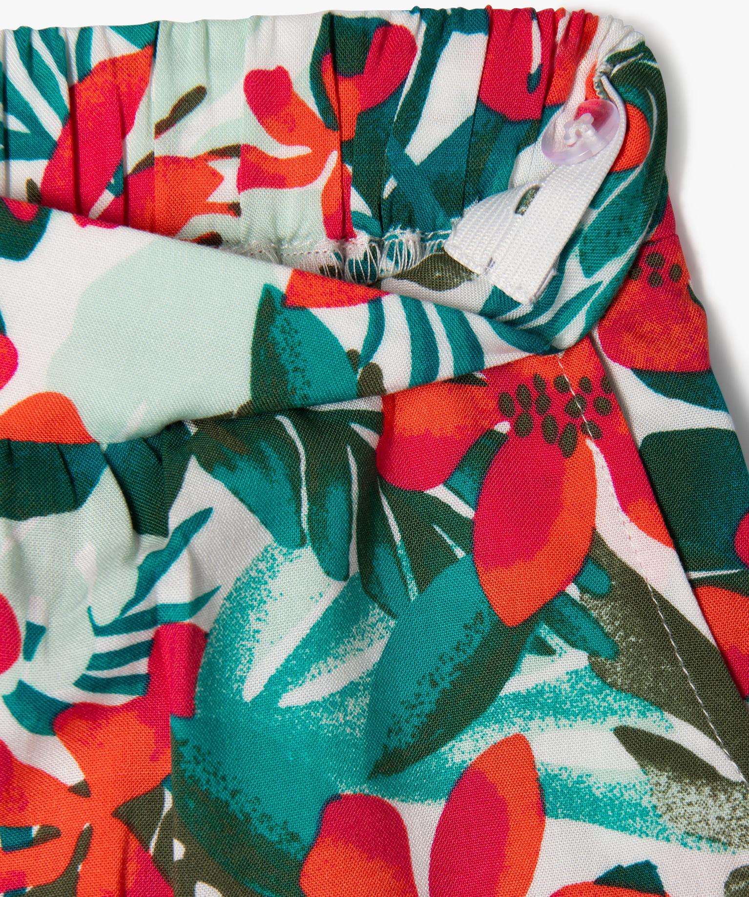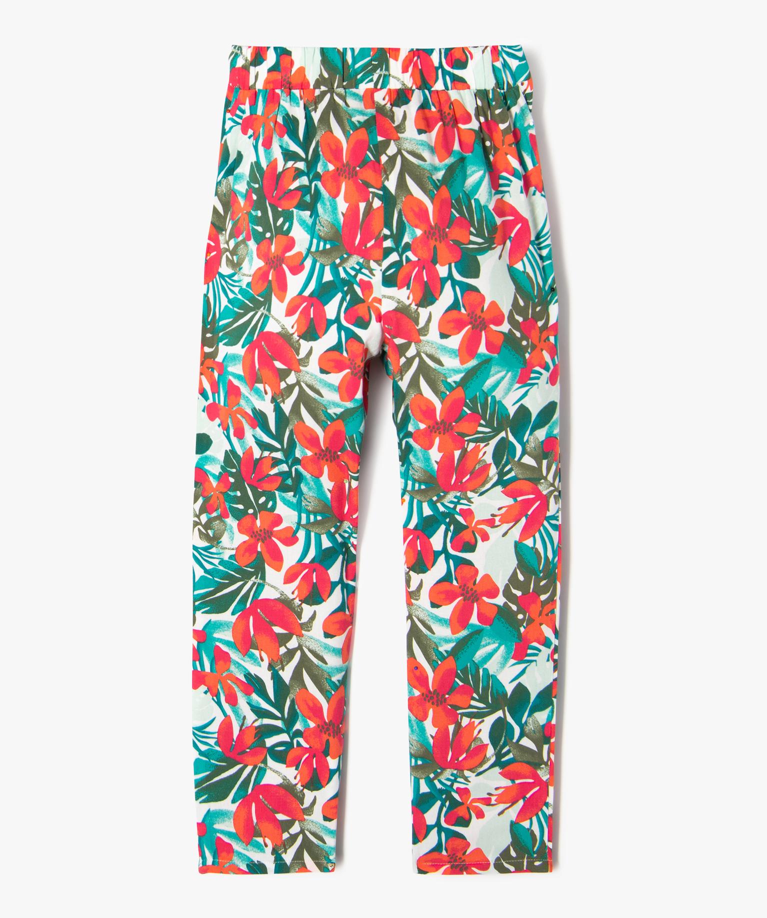 Dès que les températures grimpent, rien de plus confortable qu'un pantalon fluide en viscose ! Ce modèle fleuri et coloré ravira les fillettes. Le pantalon fille présente une coupe carotte confortable, avec une taille haute élastiquée et 2 poches italiennes. Ce pantalon léger s'associe avec un débardeur uni, une veste en jean et des tennis pour aller à l'école. En été, une blouse ou un crop top et des sandales seront ses meilleurs alliés ! Taille élastiquée au dos réglable par élastique intérieur, ceinture plate devant.