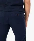 Quel charme ce chino en maille piquée ! Il apporte une allure chic et décontractée à votre dressing. Sa confection en coton stretch vous assurera un confort optimal au quotidien. Ce pantalon pour homme sera superbe avec une chemise à petits motifs. Ceinture sous passants. Fermeture bouton + zip. 2 poches devant + 2 poches passepoilées et boutonnées sur l'arrière.